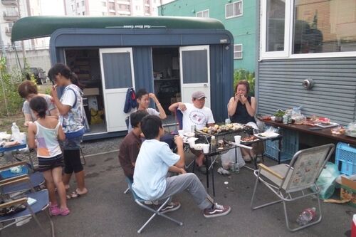今日は東川町で演奏してきました。 なんと聞いてくれたのはラトビアから来てくれた方々です!! 舞台はこんな感じ。 私たちの演奏の後に地元の和太鼓の演奏もありました。 とにかく暑かった!!優斗のソロ演奏の時、背中と胸から汗が流れてくのがハッキリと…