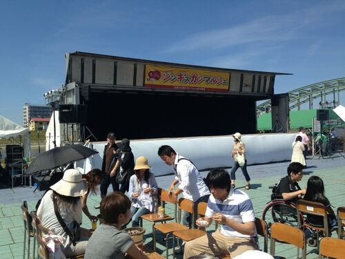 昨日は富良野でライオンズクラブでしたが。 本日は旭川でジンギスカンマルシェのアトラクション演奏。場所は旭川の雪まつり会場の場所、常磐公園の裏の河川敷です。 メンバーは家元&わたし&優斗&琴音&里歩(^^)全員、家族!アハハ たっぷり1時間の演奏…