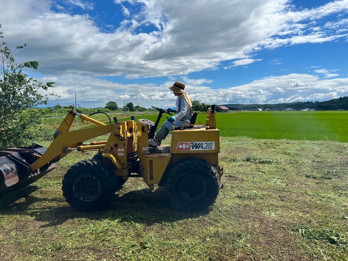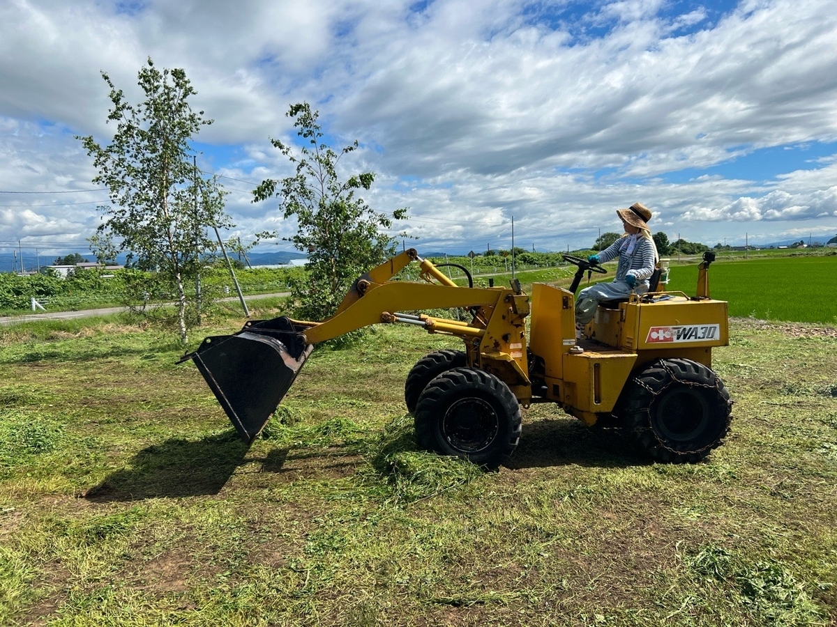 コマっちゃんのエンジンがかかったと思うと・・・・・颯爽とバケットで刈った草を集め出しました!!!
