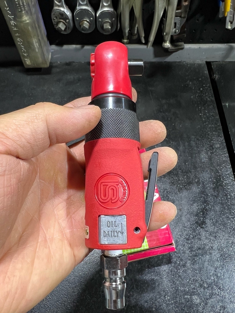 デカくてパワーのあるエアーラチェットも良いのですが、車内だとか外装の板金系にはこのくらいのコンパクトさがいいんですよ!(^^)!